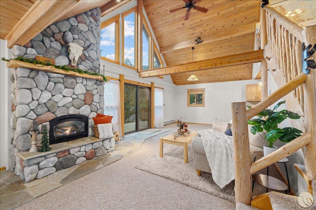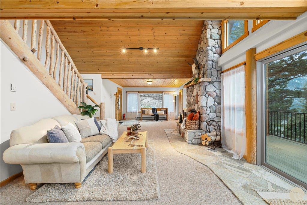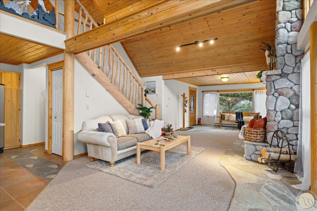 CATHEDERAL MOUNTAIN RANCH #1, S10, T05 S, R15 E, Lot 145A, COS 306285 Perched above the Stillwater Valley, this Cathedral Mountain Ranch home offers postcard-worthy views that feel almost unreal! Step inside to the warmth and coziness of vaulted pine ceilings, wood beams & a river rock gas fireplace. Updated kitchen features Cambria quartz countertops & gas stove. Main level also includes full bath, bedroom & spacious family room/den with built-ins. Spacious upper level primary bedroom is a true sanctuary with a sunroom, balcony & mesmerizing views of Cathedral Mtn. The versatile loft area has a walk-in closet & full bath with a tiled walk-in shower. Expansive Trex decking boasts new, modern custom railing. Detached 2-car garage w/ workshop & additional storage. Enjoy a clubhouse/lodge, stocked ponds, and miles of recreation surrounded by Custer National Forest. Magical and captivating, this is a place that reminds you just how extraordinary life can be!