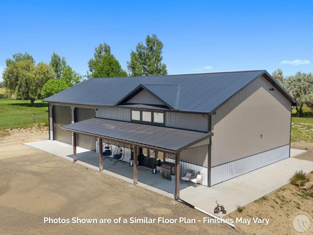 Lot 1, Block 1, of Serenity Estates Sub the official plat on file in the office of the Clerk and Recorder of said County, under Doc No.4105366. Stunning new-build barndominium in the desirable Serenity Subdivision! Enjoy the peace of country living while staying close to all the conveniences of town. Sitting on just under an acre, this thoughtfully designed home offers 2,112 sq ft on the main level—including a spacious master suite—and 1,118 sq ft upstairs with two additional bedrooms and a loft. The 1,925 sq ft attached shop features 14-ft doors and a heater, perfect for storing recreational toys, creating a hobby space, home gym, or workshop. Relax on the covered front and back porch. Enjoy the efficiency of a smaller, easier-to-maintain lot without sacrificing space or style. Photos are of a similar build, and finishes can be customized to make it uniquely yours.