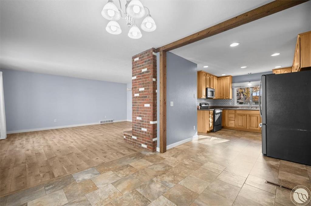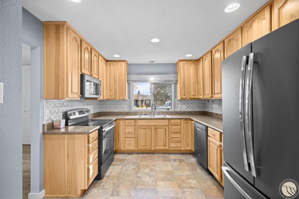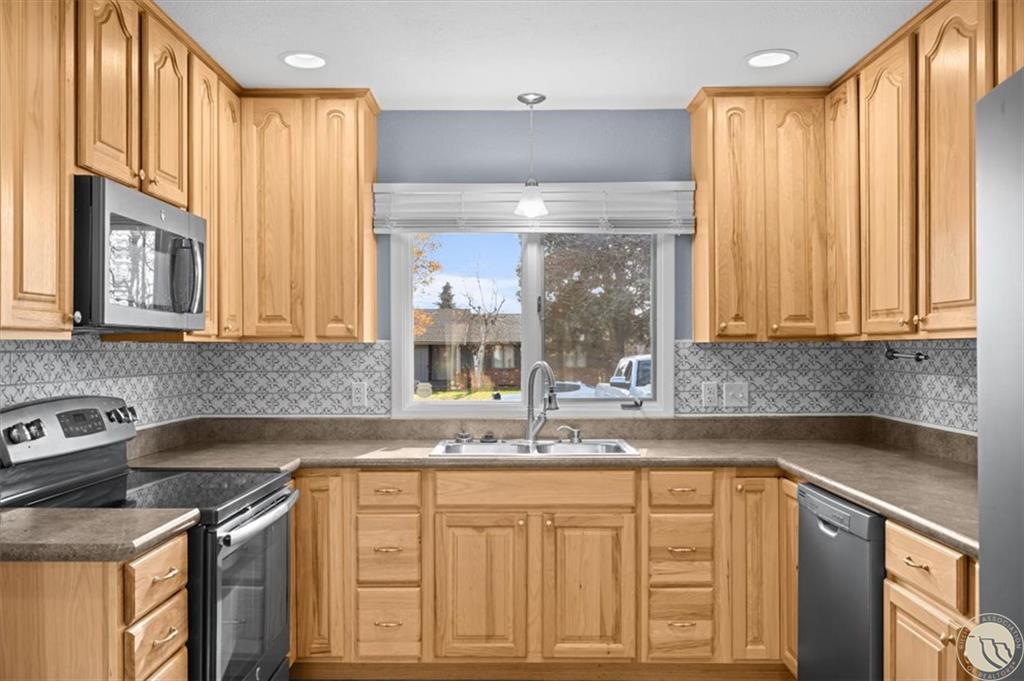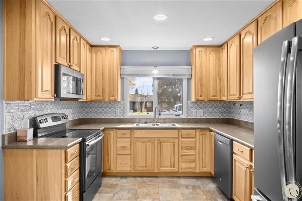 The East 1 Foot of Lot 9, and the West 69 Feet of Lot 10, Block 2 of Acheson Subdivision, Second Filing Beautifully updated 4-bedroom, 3-bath home located in the desirable West End neighborhood. The main level features fresh flooring, an updated kitchen with a stylish tile backsplash, abundant cabinetry, and stainless-steel appliances. Enjoy the bright, modern bathrooms and a cozy living room complete with a gas fireplace. The lower level offers a spacious family room with a wood-burning fireplace—perfect for movie or game nights. Step outside to a large fenced backyard with storage shed, underground sprinklers, ideal for entertaining or relaxing outdoors. The heated finished garage is an extra bonus. Recent updates include a newer furnace, hot water heater, and A/C system, ensuring year-round comfort. Move-in ready and conveniently located near shopping, dining, parks and schools.