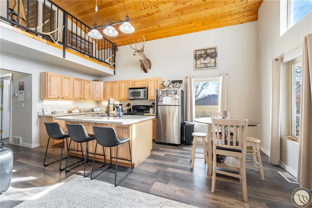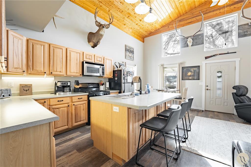 The impressive 1,080 sq ft shop is heated and fully finished with 12 foot doors and a bathroom with shower- perfect for projects, storage or workspace. Low maintenance yard with a park across the street. Enjoy small town living with modern upgrades.