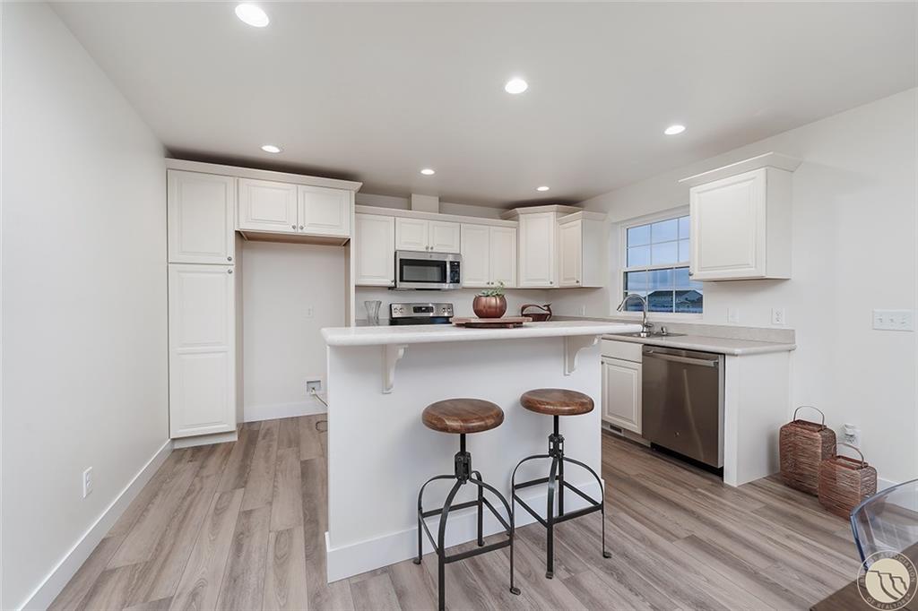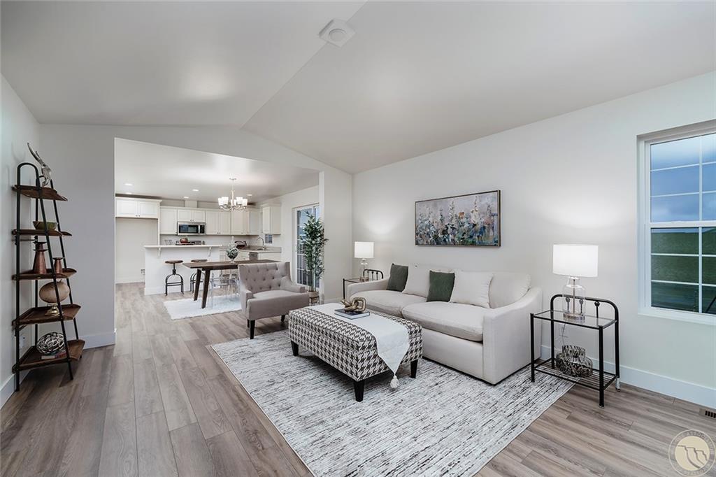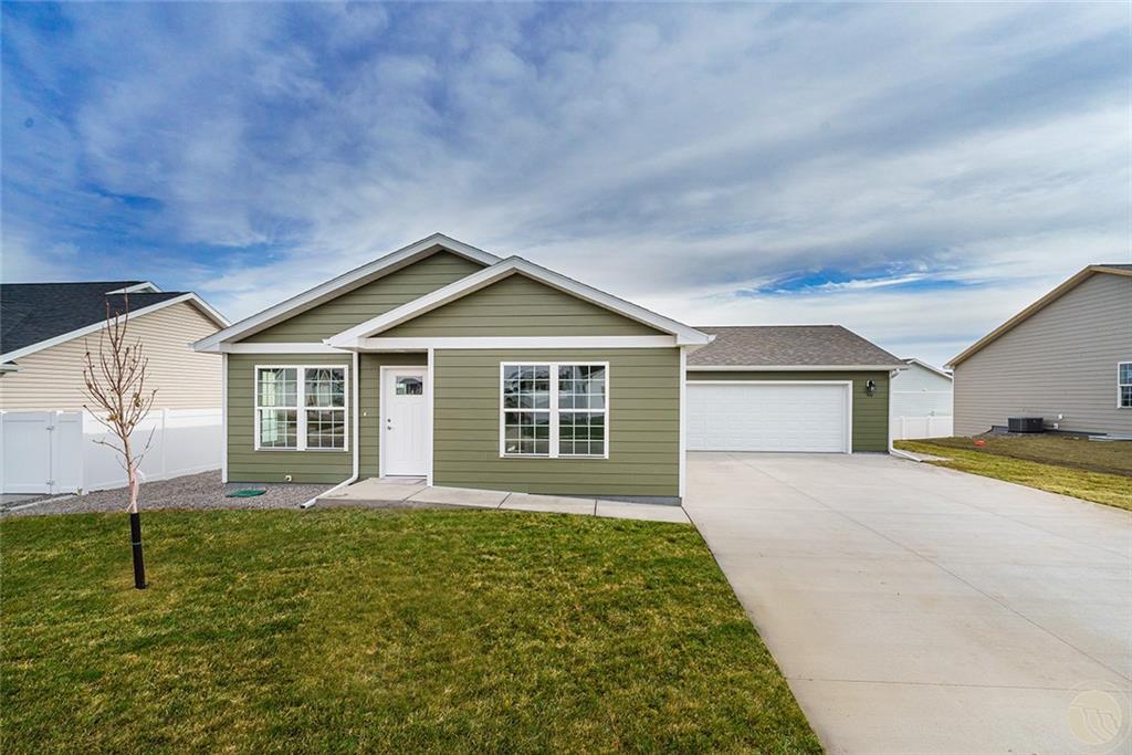 Clearwater Estates, 2nd Filing, Lot 2, Blk 3. New construction! FULLY LANDSCAPED & FENCED. Open & inviting kitchen, living, and dining. This single level home has an abundance of natural light that bounces off the neutral tones of the walls and cabinets. Kitchen has ample cabinet space, quaint window sink, stainless appliances, and a spacious island. Exit the large sliding door to side yard patio, great for relaxing or grilling and entertaining! Private hall to the primary suite with walk-in closet and bath {double sinks, walk-in shower, and large linen closet}. 2 additional bedrooms + guest bath. Recessed lighting, hall storage, laundry room with upper cupboards, and more! 2 car garage- A must see! Photos of similar home.
