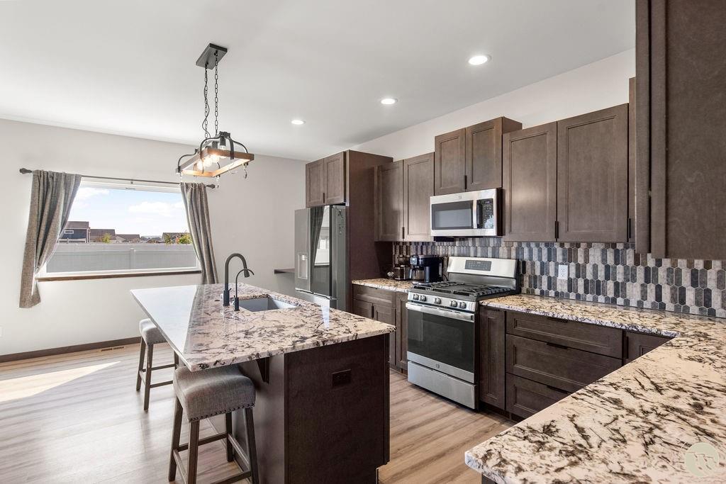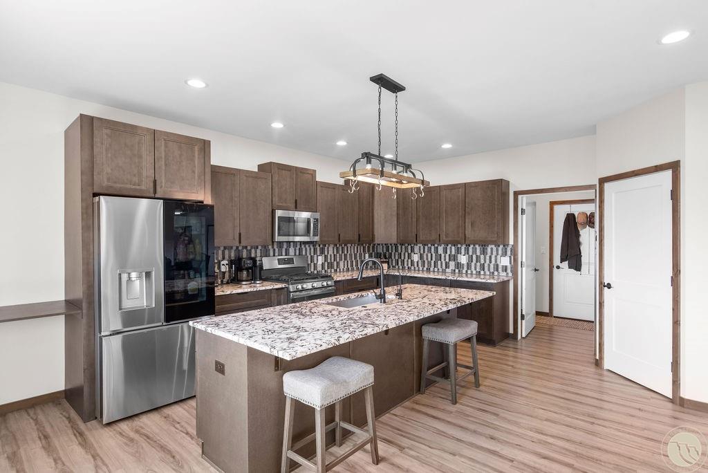 SUNDANCE SUB (22), S03, T01 S, R25 E, BLOCK 7, Lot 14 Welcome to this stunning single-level ranch in the desirable Sundance Subdivision! Built in 2022, this home offers 1,922 sq. ft. with 3 bedrooms, 2.5 bathrooms, and an oversized 3-car garage. The open-concept living area features vaulted ceilings, a cozy gas fireplace, and plenty of natural light. The chef’s kitchen is equipped with granite counters, a spacious island, custom backsplash, stainless steel appliances, and a walk-in pantry. The primary suite includes a tiled walk-in shower, dual vanities, and a generous walk-in closet. Enjoy a fully landscaped and fenced yard with underground sprinklers, perfect for entertaining or relaxing. Additional highlights include a dedicated laundry room with sink, mudroom, and expansive driveway for extra parking. Conveniently located near schools, shopping, and west end amenities, this home combines modern style with practical comfort.