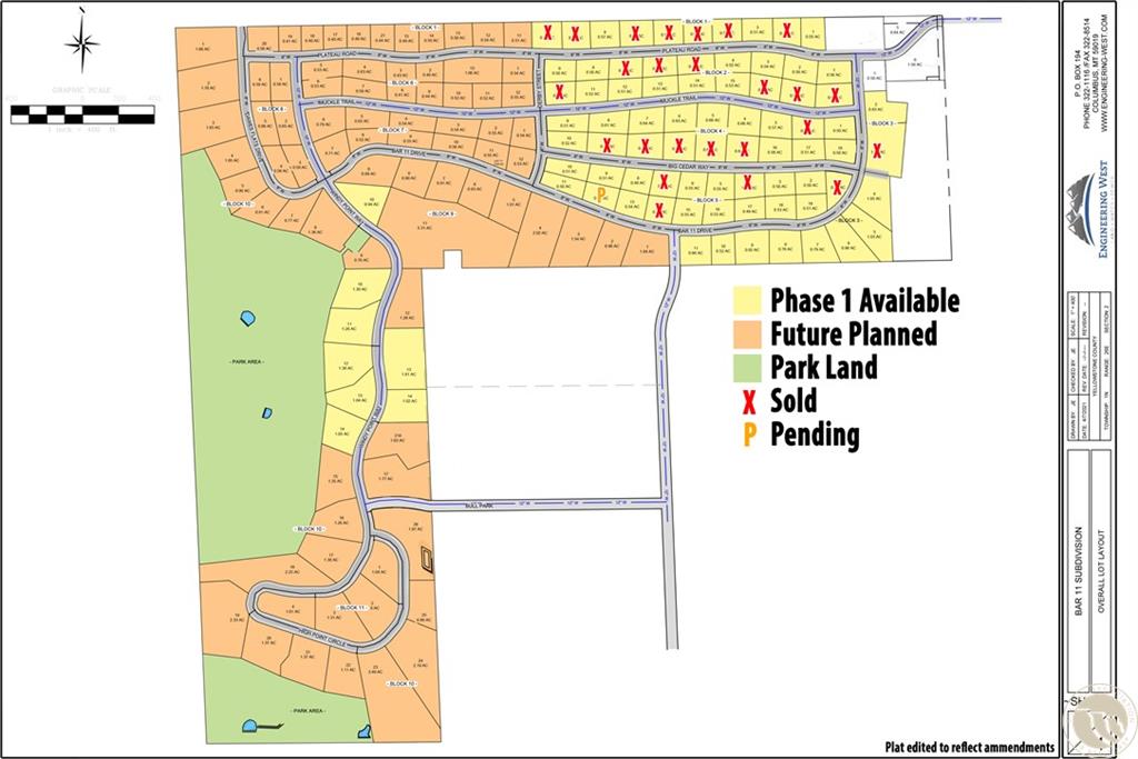 BAR 11 (19), S02, T01 N, R26 E, BLOCK 3, Lot 2A, CORR (21) Bar 11 offers a peaceful lifestyle just 10 minutes from Downtown Billings! Lots range in size from .5 ac to 5+ acres with amenities including City water, MDU Natural Gas, Spectrum Cable/Internet, snow removal, children's park in the near future, solar street lighting, 44 acres of parkland to enjoy, and beautiful views of the Bull Mountains from most lots. Call agent/assistant for a map of available lots. All info from 3rd party sources & deemed reliable. Info subject to change & not guaranteed or warranted. Buyer & buyer’s agent to verify all info.